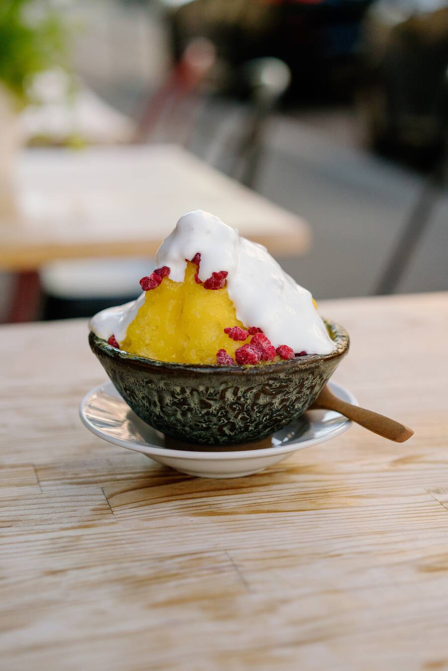 Unbedingt noch zum Dessert «Kakigori» bestellen. Hauchdünn geschabtes Eis aus verschiedenen Früchten.