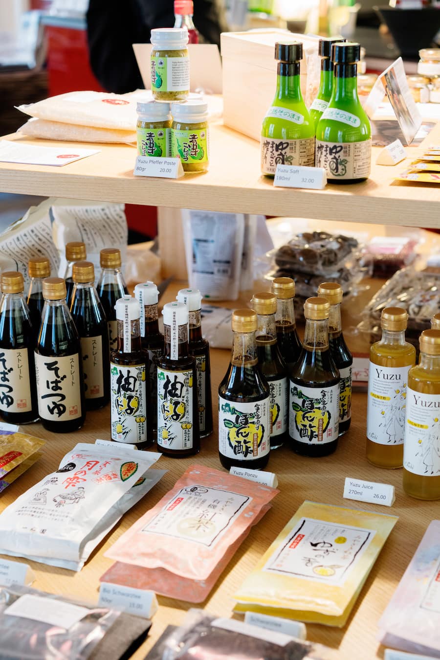Hinter jedem Produkt im Shinwazen steckt eine fesselnde Geschichte. Baumgartner und Suzuki kennen ihre Produzenten alle persönlich und reisen dafür drei Mal pro Jahr nach Japan. Und stellen so gleichzeitig sicher, dass die Herstellung den «Slow Food»-Standards sowie ihren eigenen hohen Ansprüchen entspricht. Sojasaucen, Sesamöle, Mirin oder Yuzu Ponzu: Viele Produkte lassen sich gleich vor Ort im Shop verkosten. Wer beispielsweise einmal von den herausragenden Bio-Sojasaucen probiert, dem erscheint die Kikkoman-Version fortan wie ein eindimensionales Salz-Wässerchen. Sehr empfehlenswert sind auch die schwarze Sesampaste, die hausgemachte Miso-Paste oder Reis der Sorte Koshihikari vom Vorreiter des biologischen Reisanbaus in der Präfektur Niigata. Sie gilt als beste Reissorte Japans.