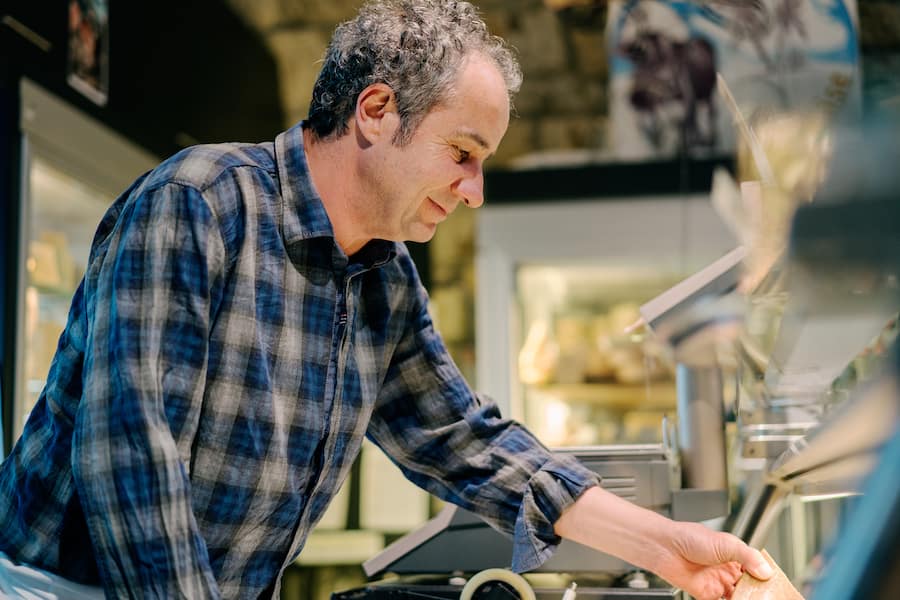 Für Geschäftsinhaber Samuel Spörri war der Wunsch nach mehr Eigenverantwortung gross nach abgeschlossener Landwirtschaftslehre und einigen Jahren auf verschiedenen Alpen im Wallis und im Bündnerland. Vor fast 30 Jahren übernahm er die Sennerei «Alp Tritt» in Emmetten im Kanton Nidwalden. Die aus Milch hergestellten Spezialitäten wie Käse, Joghurt oder Butter verkaufte er an Marktständen auf dem Bürkliplatz oder am Wädenswiler Wochenmarkt. Käse von anderen, meist befreundeten Alp- und Talkäsereien erweiterten dann das Sortiment von «Tritt Käse» über die kommenden Jahre. Schliesslich gab Spörri die «Alp Tritt» an ihren Besitzer zurück und konzentriert sich nun auf das Vertriebsgeschäft seiner auserwählten Käsesorten.